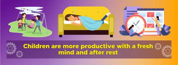 It is important to ensure that our children stay on track with their learning, but heavy workloads and commitments can cause stress and burnout. This can lead to off-task behavior, as children lose their focus and steer their attention away from learning. Scheduling breaks in your child’s study or daily routine is a useful way to keep them on track by increasing their productivity. Having a break and taking their mind off school work allows children to refresh their minds and focus their attention on other activities or tasks. Children are more likely to be productive and stimulated with a fresh mind and after rest.